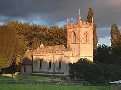 The village used to be clustered immediately around the parish church. Earthworks indicating the sites of buildings survive to the west, south and east of the churchyard.[11] However, the modern village is 220 yards (200 m) east of the church, contiguous with Middle Barton village in the Steeple Barton parish.[11] The agricultural lands of Steeple Barton and Westcott Barton were worked as a single field system. An open field system of farming prevailed in the two parishes until an inclosure act, the Westcott and Middle Barton Inclosure Act 1795 (35 Geo. 3. c. 19 Pr.), for their common lands, was implemented in 1796.[2] The main road between Bicester and Enstone traverses the parish from east to west. It was turnpiked in 1793 but was disturnpiked in 1876[2] and is now classified the B4030 road.