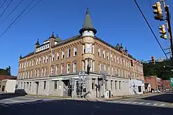 Weston Downtown Historic District is a national historic district located at Weston, Lewis County, West Virginia. The district includes 58 contributing buildings in the central business district of Weston. Most of the buildings were built between 1875 and 1920, with the earliest dating to about 1845. Notable buildings include the U.S. Post Office (1933–1934), the Art Deco style Citizens Bank of Weston (1930), B&O Railroad Depot / Weston Municipal Building, Camden Building-Weston National Bank (1896–1897), Old Citizen's Bank Building (1893), Bennett House (c. 1830s), Fuccy-Koblegard Building (c. 1901-1905), and the East and West Second Street Truss Bridge (1922). The district includes the separately listed Jonathan M. Bennett House.[2]