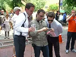 DeKay (left) and Bomer (right) during filming of the third-season episode "On the Fence", June 7, 2011