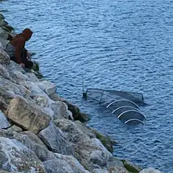 New Zealand whitebait are caught in the lower reaches of the rivers using large, open-mouthed, hand-held scoop nets, long sock nets, or rigid, typically wedge-shaped set nets.[17] Whitebaiters must constantly attend the nets in order to lift them as soon as a shoal enters the net; otherwise the whitebait quickly swim back out of the net. Whitebaiters may fish from platforms known as 'stands', which may include screens to direct the fish and systems for raising and lowering nets.