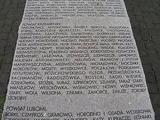 Monument in memory of the Polish victims of Volhynian massacre including Wiśniowiec Nowy and Wiśniowiec Stary, Warsaw