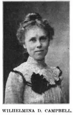 2. ^ "Wilhelmina D. Campbell", The Survey (February 24, 1912): 1813.