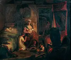 Two of Martin's pictures in St. Andrew's Hall, Norwich, The Death of Lady Jane Grey and The Death of Queen Eleanor, were engraved by F. Bartolozzi, RA, who also engraved his Imogen's Chamber. A picture of The Barons swearing the Charter of Liberties at Bury St. Edmunds, which entered the University of Oxford collection, was engraved in mezzotint by W. Ward. A Cottage Interior was similarly engraved by C. Turner, and The Confidants by J. Watson.[1]