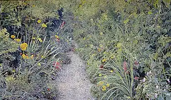 William Nichols (born 1942) is an American artist known for highly detailed, tactile landscape paintings that combine physical scale with intimacy.[1][2][3] His work depicts unassuming gardens, forests, ponds, and streams rather than grand vistas, in dense, close-up screens of foliage, thicket or water that immerse viewers within the experience rather outside it.[4][5][6] Nichols developed his mature style in the 1970s, combining painterly traditions going back to Impressionism with reemerging movements such as Realism and Photorealism;[7][8] critic John Perreault called his approach, "Photo-Impressionism."[9] He has exhibited throughout the United States and abroad, including at OK Harris Gallery in New York (1979–2013),[10] the San Francisco Museum of Modern Art,[5] Milwaukee Museum of Art,[11] Butler Institute of American Art,[12] Kaohsiung Museum of Fine Arts (Taiwan),[13] and Gulbenkian Museum (Lisbon);[4] his work belongs to many private and public museum collections.[14] In addition to reviews in national publications,[15][16][1] Nichols's work appears in several art historical surveys of Realism and landscape painting, including The Artist and the American Landscape[17] and Contemporary American Realism Since 1960,[4] among others.[18][19][5][2] Critic Mac McCloud observed that Nichols's "meticulous craft and precise observation of shape, edge, color and light" rendered his work "almost beyond reality […] alive with growth and transformation, teeming with insects and sweltering weather and yet, in the eternal aesthetic paradox it is motionless."[20] Gallerist Ivan Karp wrote, "the vital pulse" of Nichols's paintings defies "the conviction that 400 years of depictions of the natural world nullify the ability of living artists to produce landscapes of high consequence."[21]