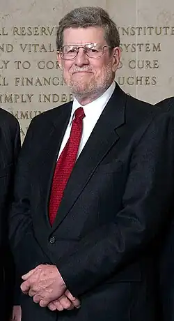 William Poole (born June 19, 1937) is an American economist who served as the eleventh chief executive of the Federal Reserve Bank of St. Louis. He took office on March 23, 1998, and began serving his full term on March 1, 2001. In 2007, he served as a voting member of the Federal Open Market Committee, bringing his District's perspective to policy discussions in Washington. Poole stepped down from the Fed on March 31, 2008.