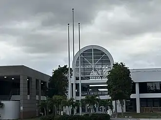 William T. Dwyer High School is a public high school for grades 9–12 in Palm Beach Gardens, Florida, United States. The school was named for William T. Dwyer, former vice president of Pratt & Whitney's Government Products Division and a community leader in Palm Beach County.[2] It is best known for its Academy of Finance Program, which is part of the National Academy Foundation. It is also an International Baccalaureate school. Since its founding in 1991, William T. Dwyer High School competes for state championships in several of their varsity sports including football, basketball, baseball, cross country, track, and lacrosse.