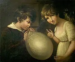 The Walker Art Gallery has a number of William Tate's portraits of notable men and women of the day including Daniel Daulby, and the sister of William Roscoe. There are also paintings of his nephew Thomas Moss Tate[4] and his niece Elizabeth Williamson, wife of Joseph Williamson.[5] There are thirteen paintings in national collections in the UK including a portrait of Joseph Wright and Girl and Boy with a Bladder at Derby Museum and Art Gallery[4] which also hosts the country's main collection of Joseph Wright paintings.