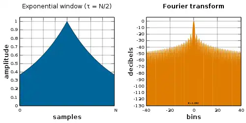 where the window weights more highly the earliest samples when , and conversely weights more highly the latest samples when .[80]