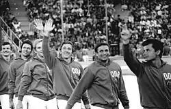 Klotz (far left) and the East German team at the 1972 Summer Olympics