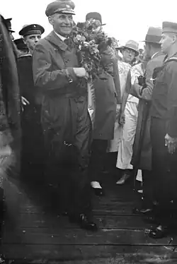 ![]() Wolfgang von Gronau being welcomed back home at Templiner See after his 1930 transatlantic flight | |