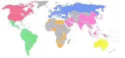 The WPA members are grouped by six continental/regional confederations, who in turn, consist of members from a country's national federation. The chart and table shows the WPA's members as of September 2022:[6]