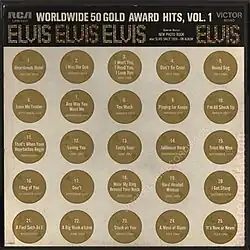 Worldwide 50 Gold Award Hits Vol. 1 is a compilation box set by American singer and musician Elvis Presley. The four-record set was released in August, 1970, as his 38th album. The set peaked at number 45 on the Billboard 200[1] and at number 25 on the country chart.[2][3] It was certified Gold on February 13, 1973, Platinum on March 27, 1992, and 2× Platinum on June 17, 1992, by the Recording Industry Association of America.[4] Of the 51 tracks featured, four make their album debut in this collection: "Viva Las Vegas", "Suspicious Minds", "Don't Cry Daddy", and "Kentucky Rain". Also included is an excerpt from the long out-of-print spoken-word EP, Elvis Sails.