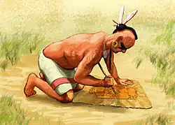 The Wulfing cache, or Malden plates, are eight Mississippian copper plates crafted by peoples of the Mississippian culture. They were discovered in Dunklin County, Missouri in 1906 by Ray Grooms, a farmer, while plowing a field south of Malden.[1] The repousséd copper plates were instrumental to archaeologists' developing the concept known as the Southeastern Ceremonial Complex.
