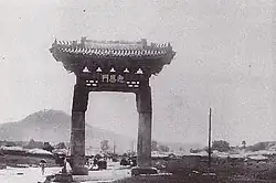 Yŏngŭnmun (Korean영은문; Hanja迎恩門) or Yeongeunmun Gate was a Joseon-era gate near present day Seoul, South Korea. Since it was a symbol of China's diplomatic influence on Joseon, the Enlightenment Party of the Joseon government intentionally demolished it in February 1895, seeking complete political independence of Joseon from China.