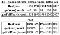 - JavaScript was changed due to concerns over the Y2K bug, and the return value for years changed and thus differed between versions from sometimes being a four digit representation and sometimes a two-digit representation forcing programmers to rewrite already working code to make sure web pages worked for all versions.[32][33]