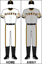 The Yomiuri Giants name and uniforms were based on the New York (now San Francisco) Giants. The team's colors (orange and black) are the same colors worn by the National League's Giants (both then as now in both New York and San Francisco). The stylized lettering on the team's jerseys and caps is similar to the fancy lettering used by the Giants when they played in New York in the 1930s, although during the 1970s the Yomiuri Giants modernized their lettering to follow the style worn by the San Francisco Giants.