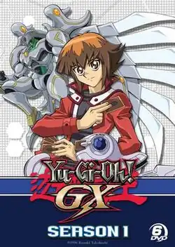 Yu-Gi-Oh! Duel Monsters GX (遊☆戯☆王デュエルモンスターズGX, Yū-gi-ō Dyueru Monsutāzu Jī Ekkusu) is the fourth addition to the Yu-Gi-Oh! anime meta-series, as well as the first main spin-off series. The plot centers around Jaden Yuki and his friends, and tells of their adventures at Duel Academy, a school that teaches students how to play the card game Duel Monsters. Season one covers their first year at the Academy. It was broadcast by 4Kids Entertainment as simply Yu-Gi-Oh! GX.