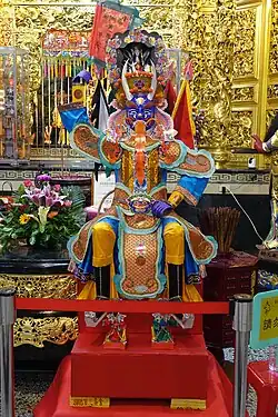 Effigy of Mianran Dashi at a temple in Taiwan. Similar effigies are sometimes enshrined at the Mianran Altar during the ritual.